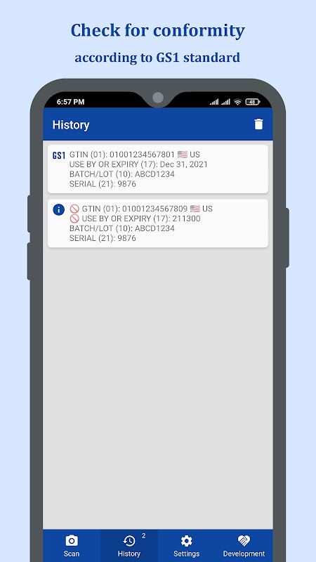確保您的 Data Matrix 和 Code-128 條碼符合 GS1 標準。檢查: