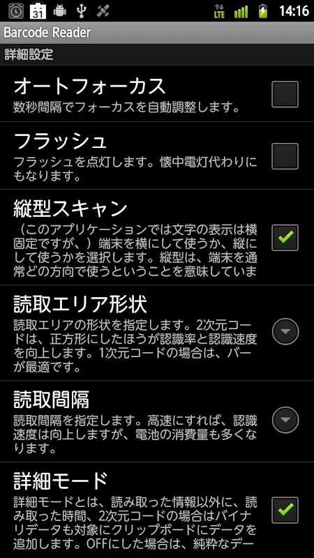 QRCODEやNW7のバーコードを読むことができ、またQRCODEを生成し、下記のような特徴があります。
