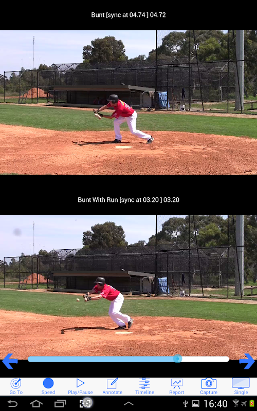 RECORD - Coaches, assistants, teachers or parents can record video and then provide players with technique analysis by replaying their batting, pitching, throwing and fielding action in real time, slow motion and frame by frame. Feedback can be recorded onto a new video or built as a PDF coaches report with key images and annotations.