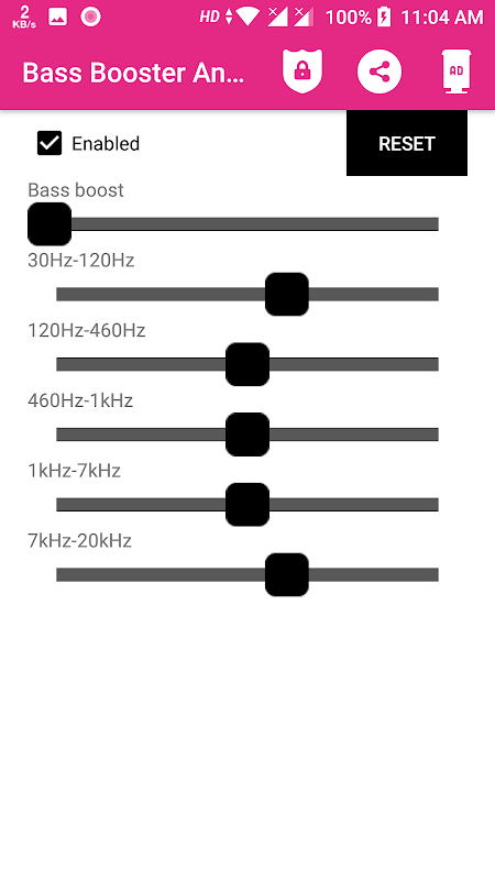 * 打開低音增強器應用程序並調整聲級和頻率。