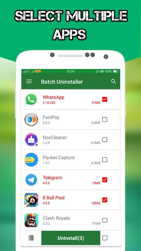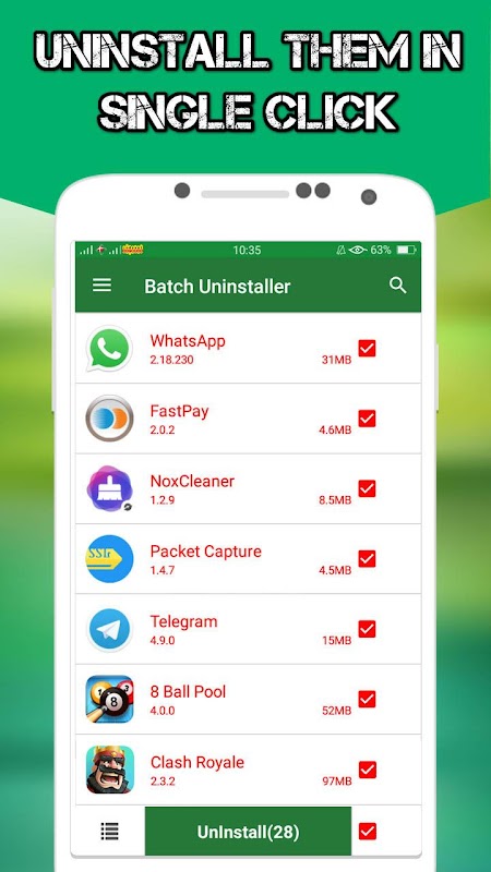 This application provide you the clean and easy way to uninstall the unwanted applications in your phone and tablet. The uninstaller is able to uninstall the non-system applications. Clean and effective interface. Easy to use. Just select the applications from a list of installed application and tap the big uninstall button.