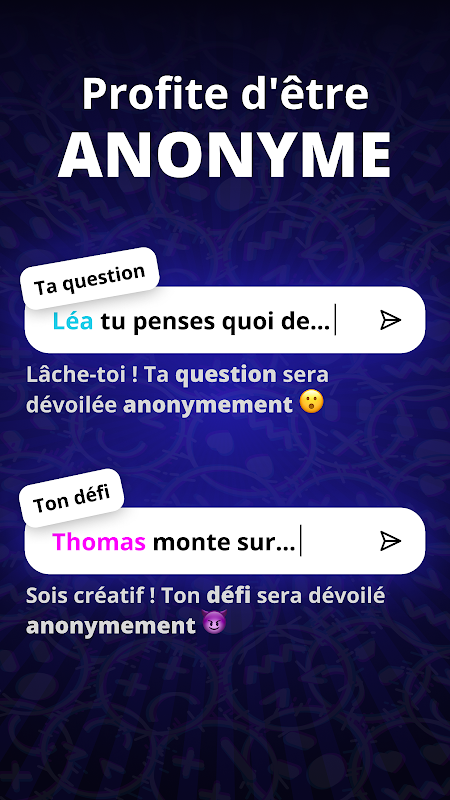 想要發現你朋友的秘密,發起挑戰並提出最糟糕的問題,同時保持匿名,然後下載 Bazarde,這是你聚會的終極遊戲!添加您的朋友並開始遊戲!