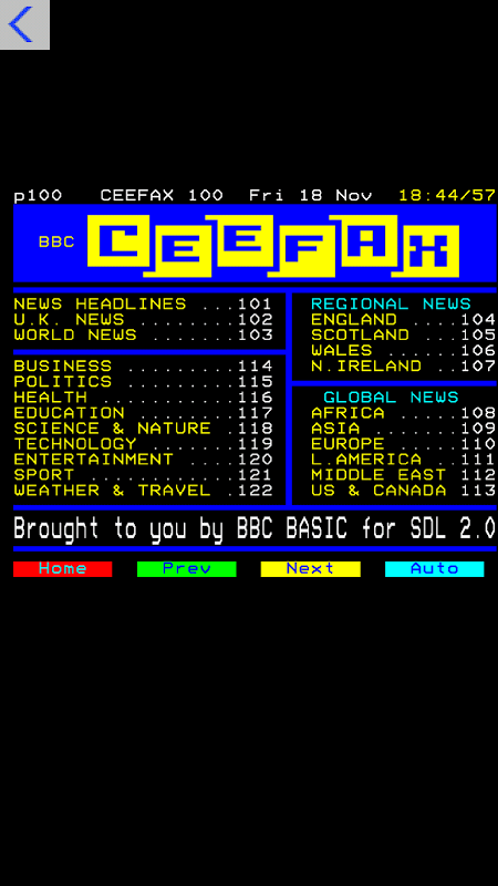 BBC BASIC 是英國廣播公司在 20 世紀 80 年代初為其開創性的電腦掃盲專案指定和採用的程式語言。這是一種先進的跨平台實現,與早期版本相比有許多增強功能。除了語言擴展之外,它還支援抗鋸齒 2D 圖形、3D 圖形、著色器編程,並包含 2D 物理引擎。其多媒體功能包括立體聲音樂、音效和視訊。它支援網路和加速度計。儘管如此,它仍然與 BBC 微型計算機保持了高度的兼容性,包括 SOUND、ENVELOPE 和 MODE 7。
