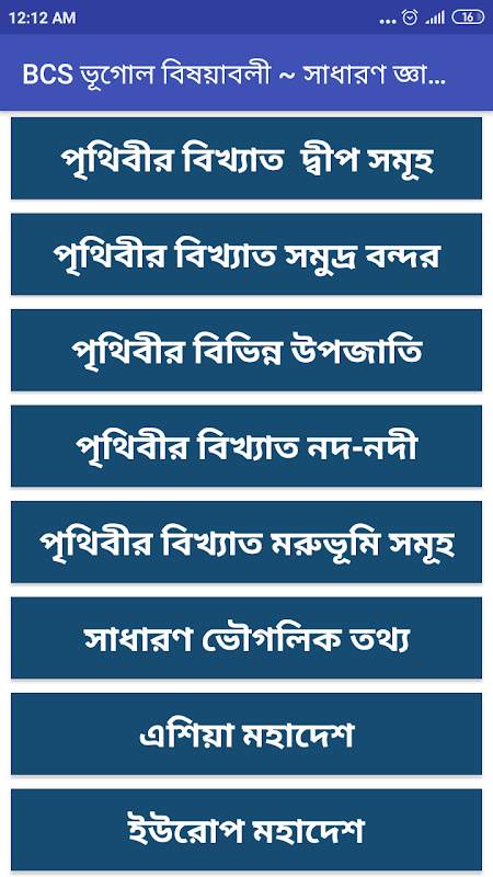 For BCS Preliminary preparation this app will play very important role. This app deals with Geography & Environment Science. You will get some important question and solution on it. Geography & Environment related this BCS app will definitely help you to take your perfect preparation at general knowledge part. For education and book-reference matter, you will be facilitated more by it.