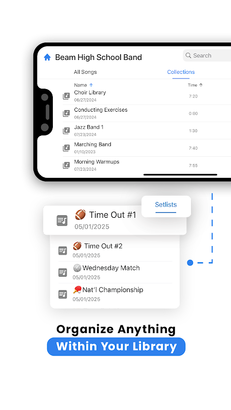 激活實時模式以自動將合奏中的每個人連接到您的設備。當您選擇一首音樂時,每個人的該歌曲的各個部分都會立即顯示在他們的個人設備上。一切都不需要互聯網。