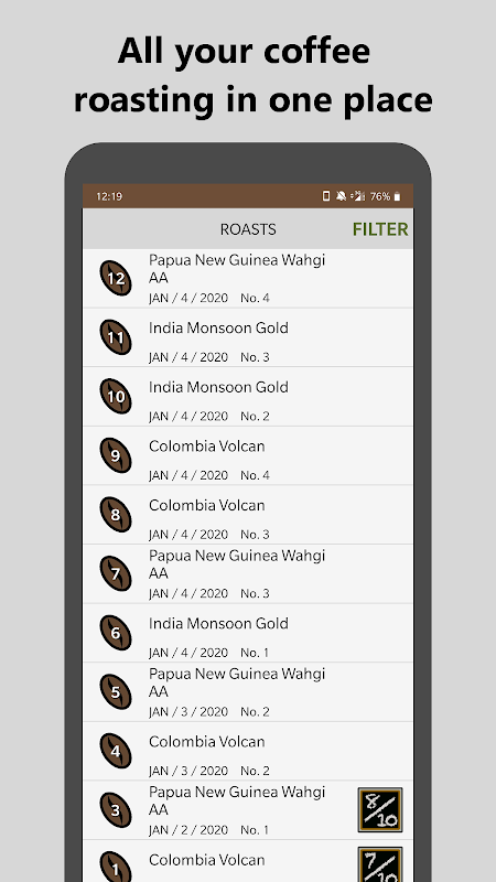Bean Tracker旨在記錄有關咖啡豆烘焙的所有重要信息。