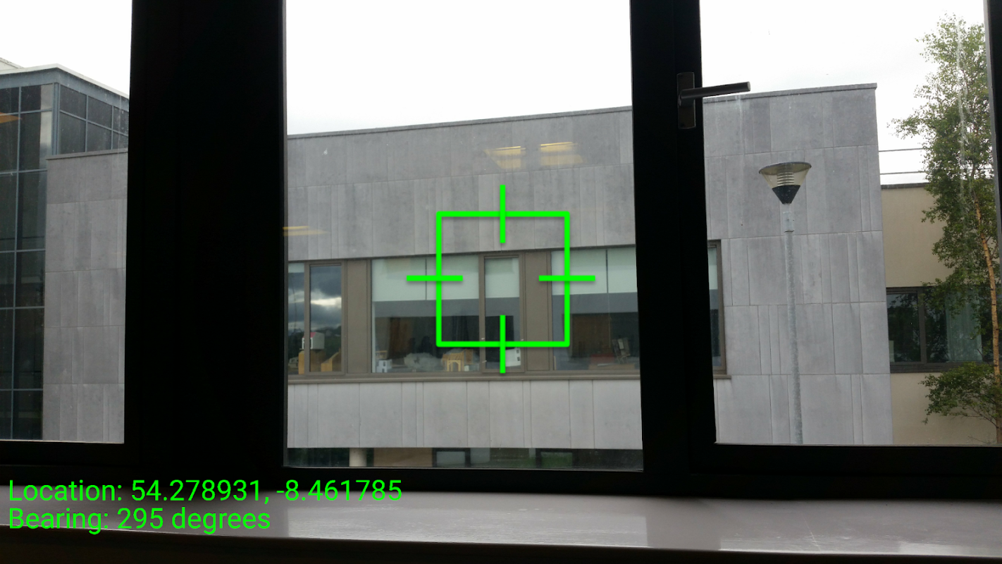 Compass bearing and location data is added to the photo and the result save in the Gallery.