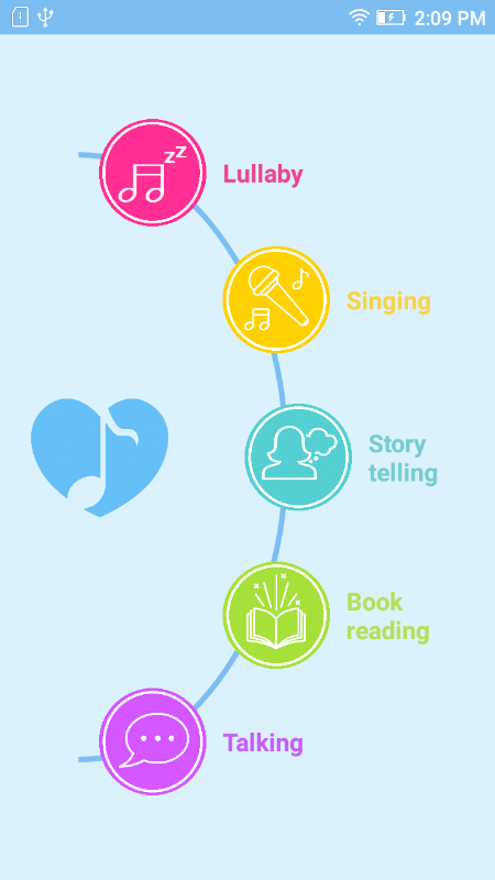 通過Belly Tunes,您可以錄製自己的聲音,閱讀書籍,唱歌,說話,唱搖籃曲,隨時隨地播放給您所愛的人;在工作,在公園散步,在朋友家裡,...是的,你幾乎可以保持這種特殊的聯繫,即使你正在參加商務會議。