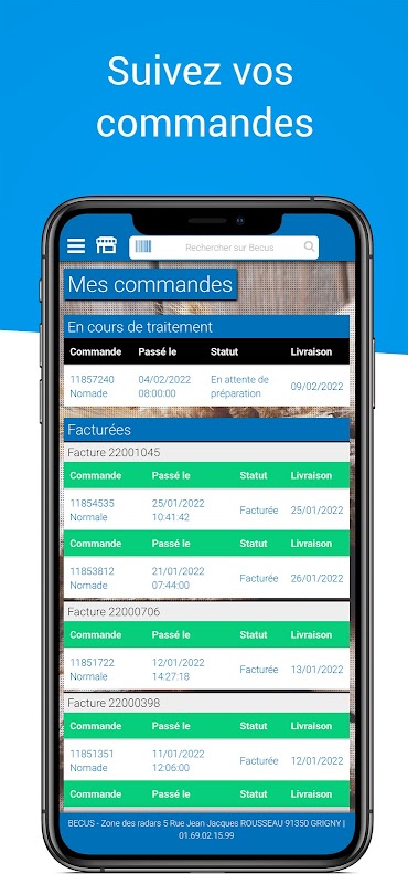 - Retrait au dépôt de Grigny 1h après la commande aux jours et heures d’ouverture