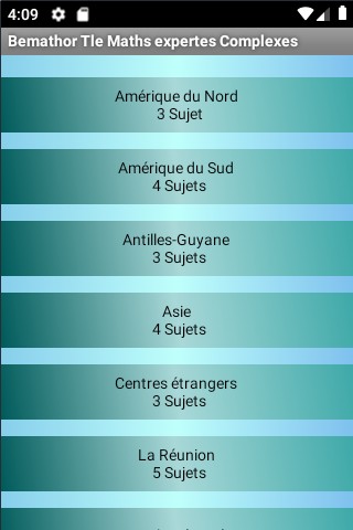 該應用程序提供了大約 40 項 2015 年至 2019 年在 bac 進行的關於復數的更正練習,這些練習在國外、法國本土、DROM-COM、DOM-TOM 等各種學士學位考試中心進行。