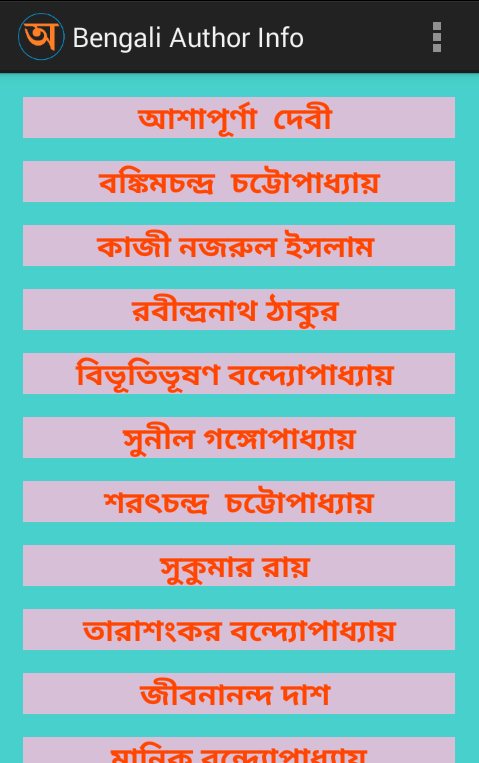'Bengali Author Info' provides short and quick information of various Bengali Authors. Information includes birth-death, literary works, awards etc. Whats New ?! Well, whole info is given in Bengali !
