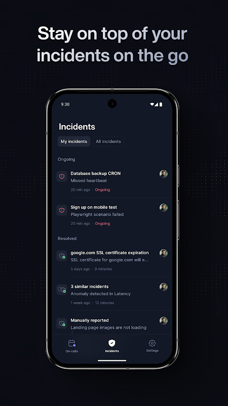 透過您的首選管道獲取事件警報:推播通知、簡訊、電話、電子郵件、Slack 或 Teams 訊息。只需在手機上按一下即可確認該事件,讓團隊的其他成員知道您正在處理該事件。