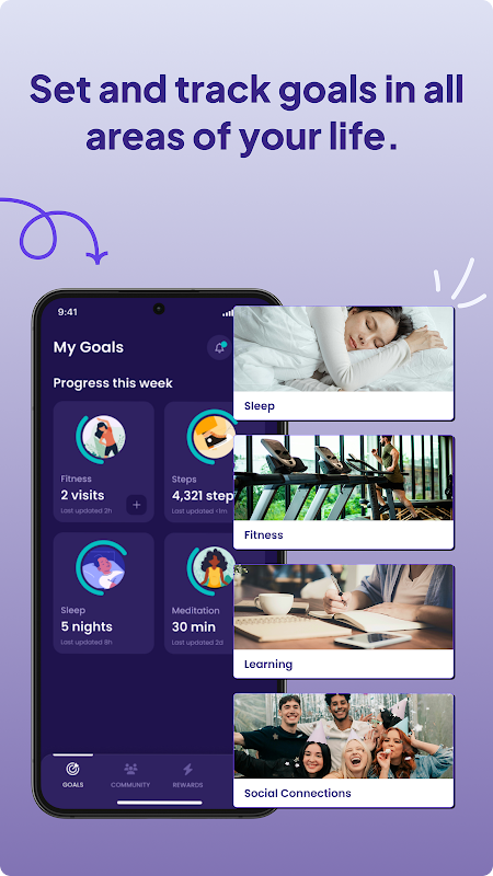 BetterYou 是一個健康習慣伴侶,可讓您在四個健康類別中設定目標:身體、社交、教育和正念。