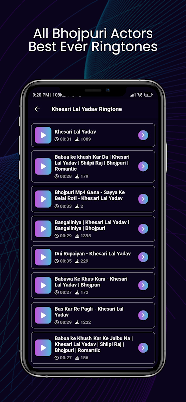 Once users find a ringtone they like, they can listen to a preview of it before downloading it to their device. The app also allows users to set the selected ringtone as their phone's default ringtone or assign it to specific contacts. Bhojpuri songs are loved by most of the people in india, Bhojpuri gana is the most entertaining source as hot bhojpuri is preferred by most of the people.