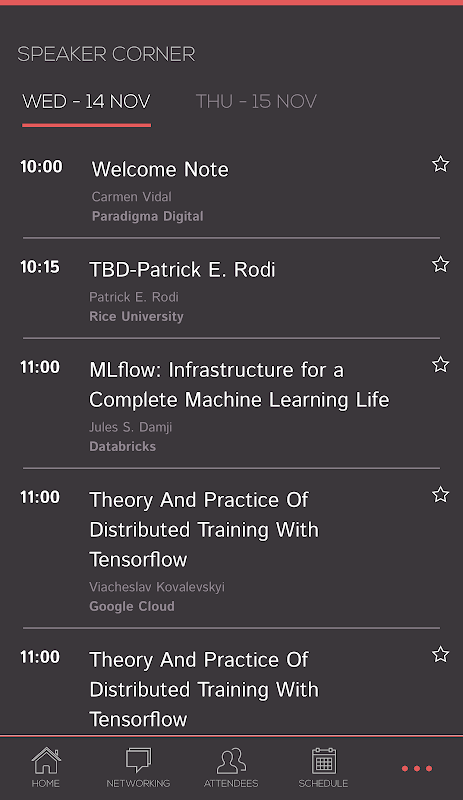 With our networking app you can see the agenda during the event, direct message attendees and see special activities from sponsors.