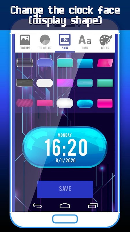 數字會不斷變化,因為這是一個數字時鐘動態壁紙,如果您將它用作鎖定屏幕的數字時鐘動態壁紙,時鐘始終可見。每當您想要查看此LED數字時鐘LWP的時間時,您無需解鎖手機。您可以選擇的一些背景是高品質的數字時鐘動態壁紙高清。選擇許多定制數字掛鐘和現代時尚外觀。一些現場數字時鐘可能看起來很抽象,帶有免費的數字時鐘壁紙,看起來很未來,但也有更簡單的掛鐘和日期設計。