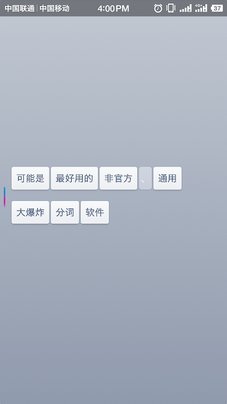 3 使用类似IPHONE悬浮按钮拖动方式触发大爆炸功能,只需要移动浮动按钮到文字并点击按钮即可,不使用锤子很容易出错的“一大块肉按压”触发方式。