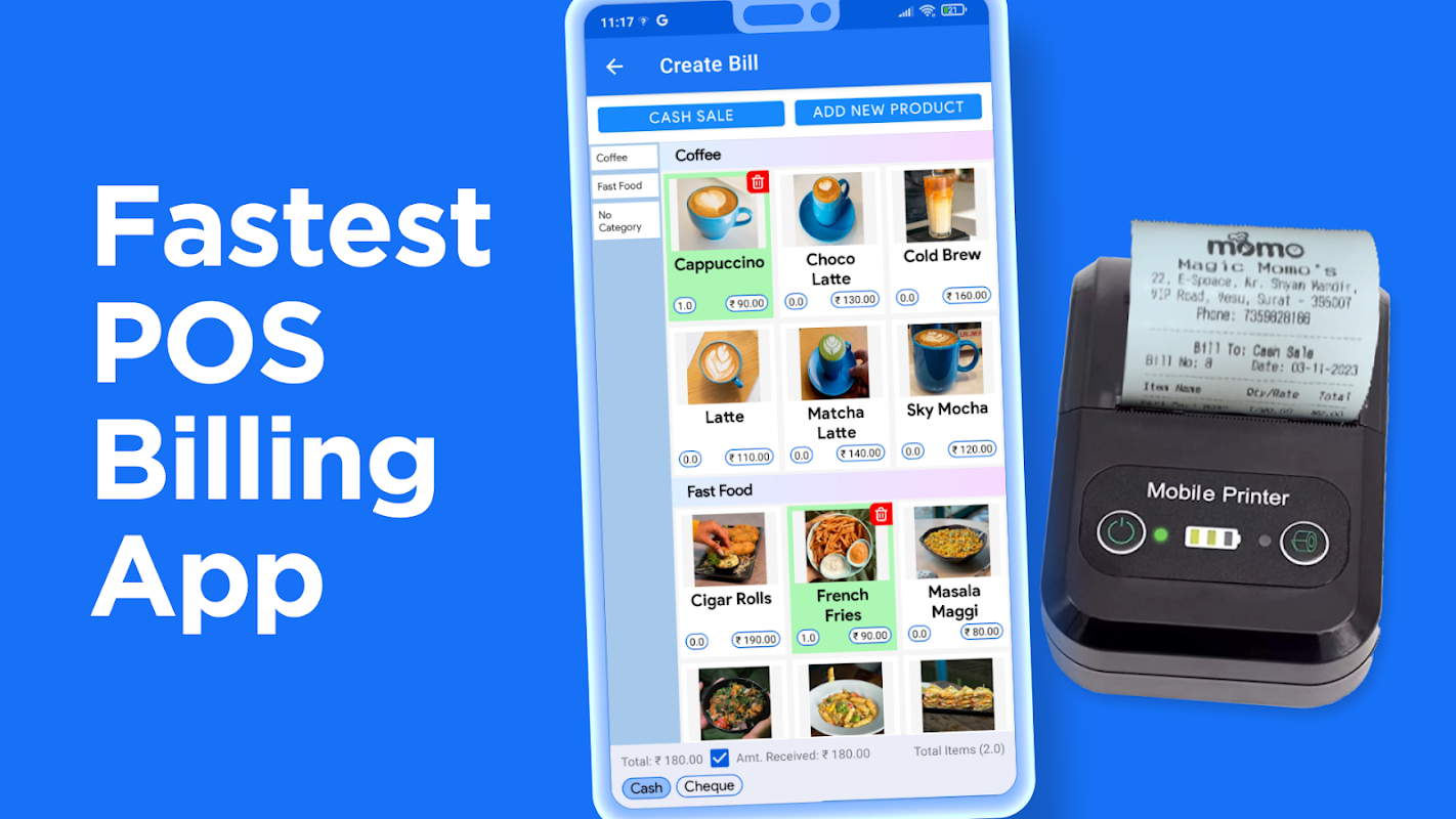 適用於商店、沙龍、咖啡館和印度小型企業的 POS 和計費應用程式。