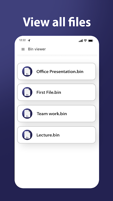 Bin File Viewer and Reader: bin file opener for android 是一個允許用戶查看二進製文件內容的應用程序。 二進製文件是以二進制格式存儲數據的計算機文件,這意味著它們由代表不同值的 1 和 0 序列組成。 與人類可以輕鬆閱讀的文本文件不同,二進製文件通常用於存儲圖像、音頻和視頻等複雜數據。 此 bin 格式閱讀器 - 適用於各種文件的 bin 開啟器應用程序免費提供適用於 android 的 bin 文件開啟器,並且可以毫無問題地與各種 Android 設備一起使用。 Open Bin File - 二進製文件查看器允許用戶以一種易於理解的方式查看二進製文件的內容。 這是通過解釋二進制數據並使用此 bin 照片查看器 - 二進製文件查看器以更易於閱讀的格式顯示它來完成的。 您可以使用 Bin File Opener:Bin Viewer 應用程序將手機中的任何文件轉換為二進制格式。