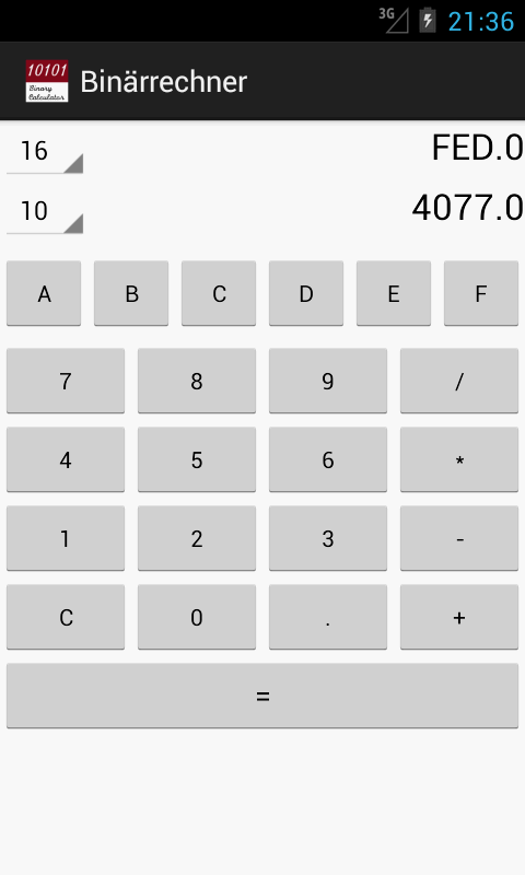 Input of all number systems from binary system to hexadecimal system (not all systems in Light Version). Conversion of these number systems into one other. Addition, subtraction, multiplication and division of all number systems.