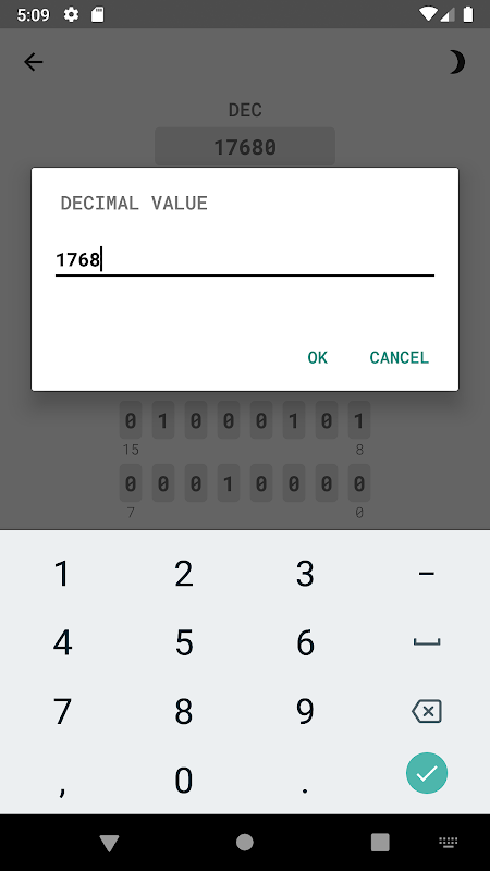 - simple copying of binary (BIN), decimal (DEC) or hexadecimal (HEX) values to the clipboard for further use;