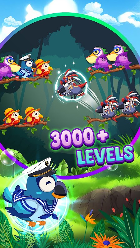 • 拼圖遊戲謎題:等待你的有3000個關卡。幫助鳥兒進行排序,幫助它們飛翔。途中會有許多障礙物來挑戰你的救鳥技巧,如炸彈、昏昏欲睡的鳥兒、籠子鎖、蛋與錘子以及鎖定站立關卡。