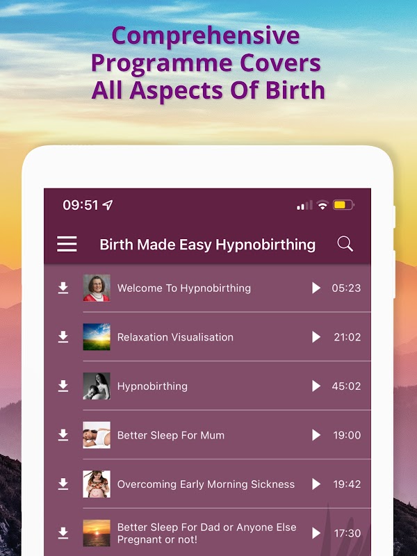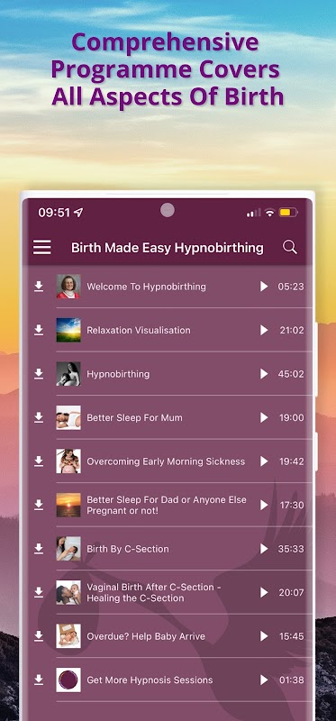 一個強大而全面的分娩應用程序,涵蓋從自然分娩到剖腹產的所有可能發生的事件,以及在逾期時如何幫助您的寶寶到達。您可以立即免費試用我們的介紹性放鬆可視化功能,如果喜歡的話,還可以通過訂閱方式訪問所有其他唱片以及數字版本的《輕鬆出生》。