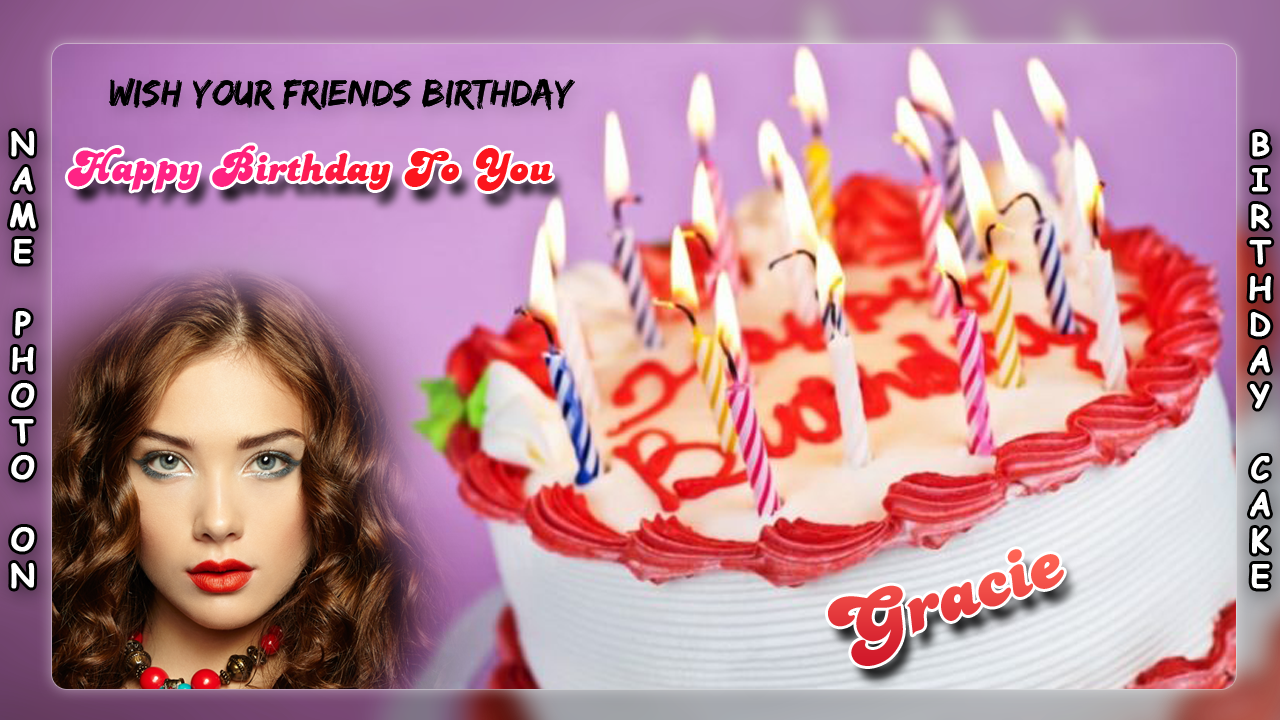 Birthday Cake With Name And Photo is an amazing app Which lets you wish with beautiful Birthday Cake by writing your friends Name in Birthday Cake on with her photo on cake and also share them.