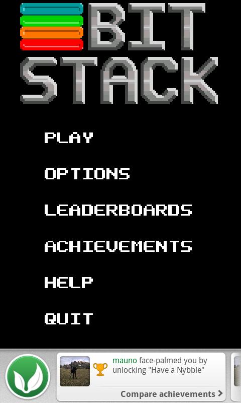 Bit Stack is a fast paced retro puzzle game designed for touch input. As the bits fall, you must match 2 or more bits of the same color and clear them to earn points. Build up a combo multiplier by clearing multiple bit stacks in a row! The game ends when the timer runs out, or you fill the screen with bits.