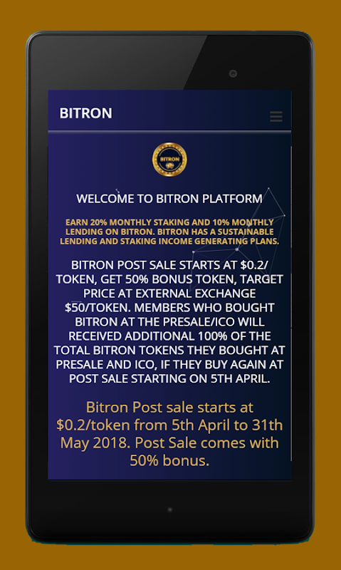 BITRON HAS A SUSTAINABLE LENDING AND STAKING INCOME GENERATING PLANS.