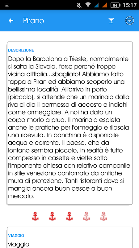 Attraverso i commenti degli utenti sarà possibile sapere che il ristorantino di banchina è “buono” piuttosto che avere un’idea di come siano accoglienti e puliti i bagni, se la recensione è data da un equipaggio familiare, sarà possibile capire come si è trovato chi naviga con i più piccoli a bordo, ecc.