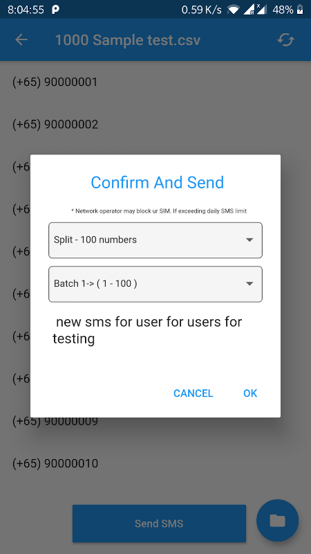 ✔ Before sending SMS you can control amount of recipients with each batch count selection.