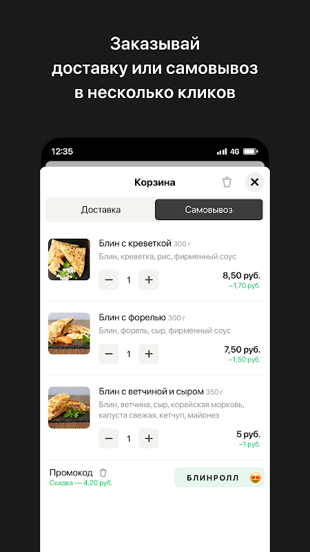 「Blin Roll」是斯韋特洛戈爾斯克的送餐應用程式!