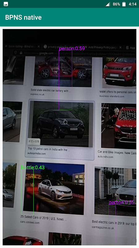 This application is designed to help visually impaired person. It is basically real time object detector that also uses speech synthesis to give the person feedback on the type of object preset infront of the camera.
