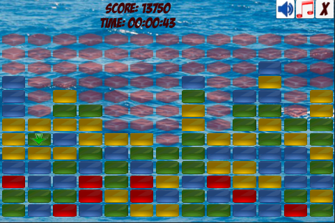 Select groups of two or more blocks to remove blocks before they fill the entire screen. You get 50 points for each block removed plus additional bonuses when greater then two blocks are removed at once! Plus removing a block with a bomb removes all blocks of the same color the bomb occupies. Removing a block with a star changes the blocks colors. Removing a block with a timer stops the blocks movement toward the top of the screen for a short time. And removing a block with a down facing arrow pushes the blocks down two rows. When the game is over you also have an option to increase your current score before submitting it by watching a video which will restart the game with the score at your current score.