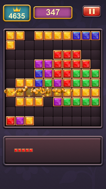Block puzzle is easy to master. Only Drag and drop gem blocks into 10×10 grid and eliminate blocks by making full rows or columns. Crush as many cubes as possible. If there is no more space to drag extra blocks, it will game over.
