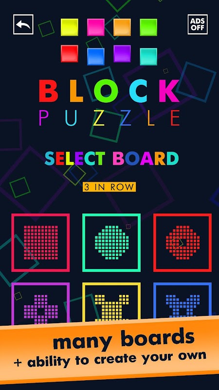 遊戲Puzzlematch BlockPuzzle具有獨特的模式,可讓您選擇遊戲類型,選擇塊類型並創建自己的遊戲板。