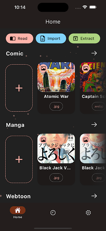 從任何地方導入:從設備上的任何資料夾輕鬆導入或提取漫畫、圖像漫畫和網路漫畫 (manhwa)。