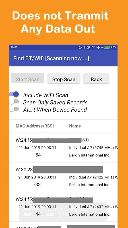 說明:更高的RSSI意味著更接近您,例如RSSI -60設備比RSSI-78設備更接近您。
