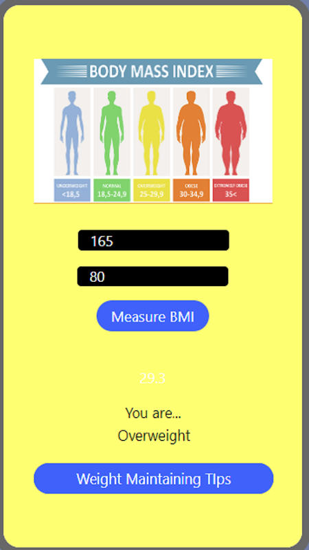 該應用程序會詢問您的身高和體重,然後計算您的 BMI 是否正常、過低或過高。根據結果,它還會為您提供不同的提示,以改善或保持您當前的身體狀況。