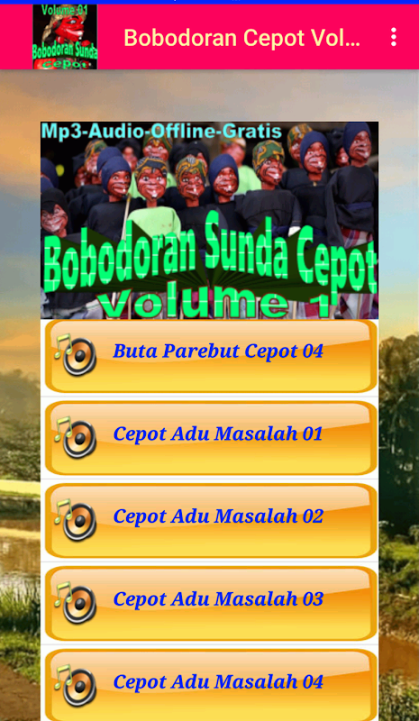 由Bobodoran Sunda Cepot第1卷提出。此應用程序是為Sundanese有趣的故事或更知名的Bobodoran的粉絲準備的。這次,達人典型的Bobodoran圍繞著Pasundan土地上最著名的Wayang Golek角色,即Tumaritis村的Kang Cepot。享受Cepot與其他同名人物的互動中的滑稽動作,例如Semar,Dawala,Ijem,Blind,Kang Ibing等。在第一部分中,您可以享受Ki Dalang Asep Sunandar Sunarya講述的6個有關快速香薰劑的故事。