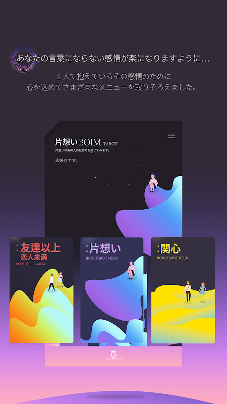BOIM塔羅牌是一張能溫柔讀懂自己和對方心思的塔羅牌。由專門讀心術的大師設計的塔羅牌服務。
