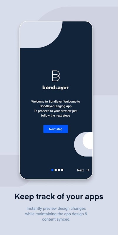 Bondlayer Staging App允許預覽和測試設備上的Bondlayer項目。此應用要求您輸入在項目的發布部分中可用的PIN碼,然後登錄到您的帳戶(app.bondlayer.com)才能查看您的項目。