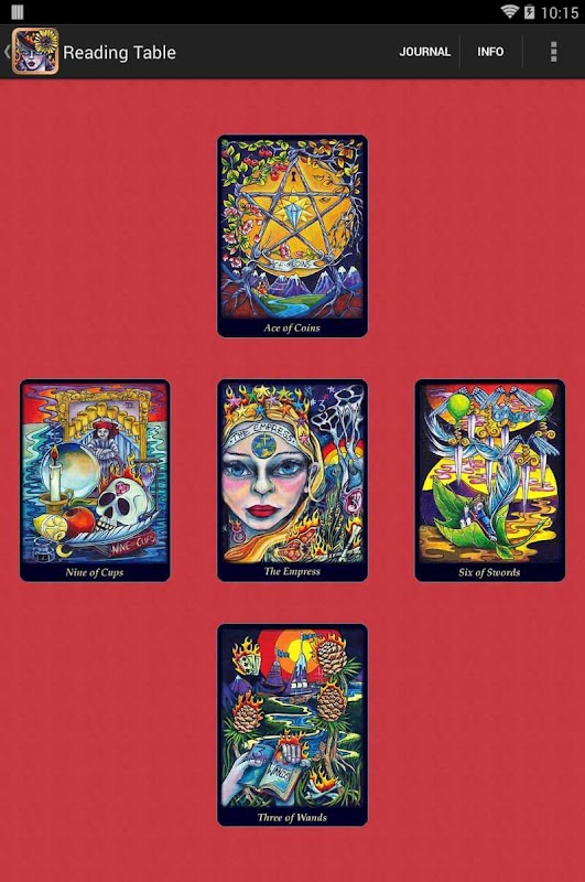 在這裡,每一個魔杖已經成為Thyrsus,由Maenads和酒神象徵著繁榮和快樂的山神進行松塔魔杖。錢幣已成為錢幣。甲板上的場景和符號很容易閱讀那些熟悉的騎士韋特史密斯塔羅牌。對於人們新的塔羅牌,Bonefire可能會更容易比傳統的甲板上閱讀,其目前天視覺隱喻。 Bonefire的藝術召回時代經典紋身。依托圖像的藝術實力,Bonefire塔羅牌自帶的目的是激發讀者的直覺非常簡潔的書面材料。