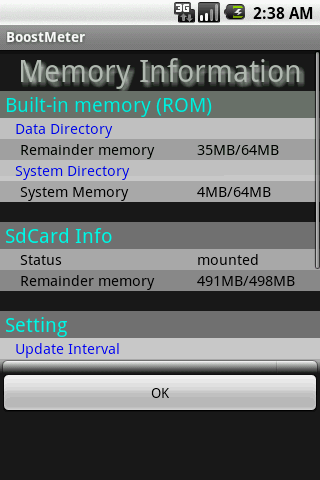 BoostMeter是一個工具來檢查ROM和SD卡的容量。