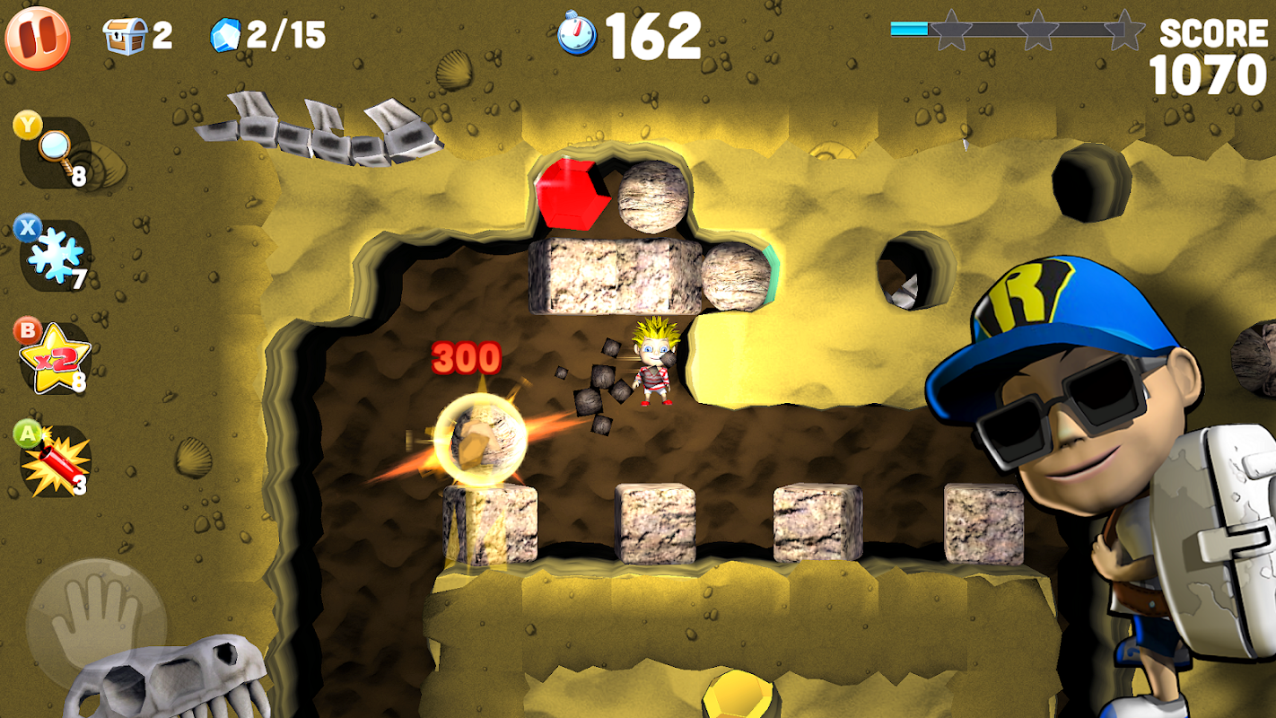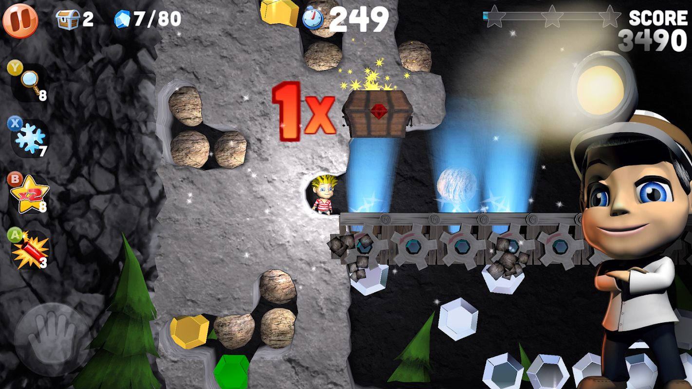 Boulder Dash® Deluxe takes you, together with the game character called Rockford™ into a myriad of new and exciting challenges. Dig through spectacular caves with 3D elements; avoid falling boulders; collect valuable gems and avoid nefarious enemies along the way. Discover treasure chests with rare collectibles and strong power-ups. Boulder Dash Deluxe includes 180 new exciting and unique levels. Plus, dig through 9 brand new worlds with high-end graphics and their own textures, dive into the Classic 1984 World with its caves or enjoy The Liepa World; a set consisting of 20 of the most mind-bending levels designed by the creator of the original 1984 Boulder Dash version and video game legend Peter Liepa. And, if that’s not enough, you will be challenged by 15 new special opponents ranging from Octopus to Snow Tiger. Boulder Dash® Deluxe truly is the pinnacle in 35+ years of Boulder Dash®!