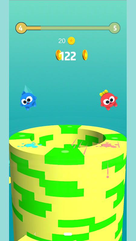 Swipe the screen left and right, rotate the pillar, help it obtain coins, avoid obstacles, and break open the pillar. After reaching the bottom, try to touch the button and rescue your companions from the cage, enjoying the joy of jumping together.