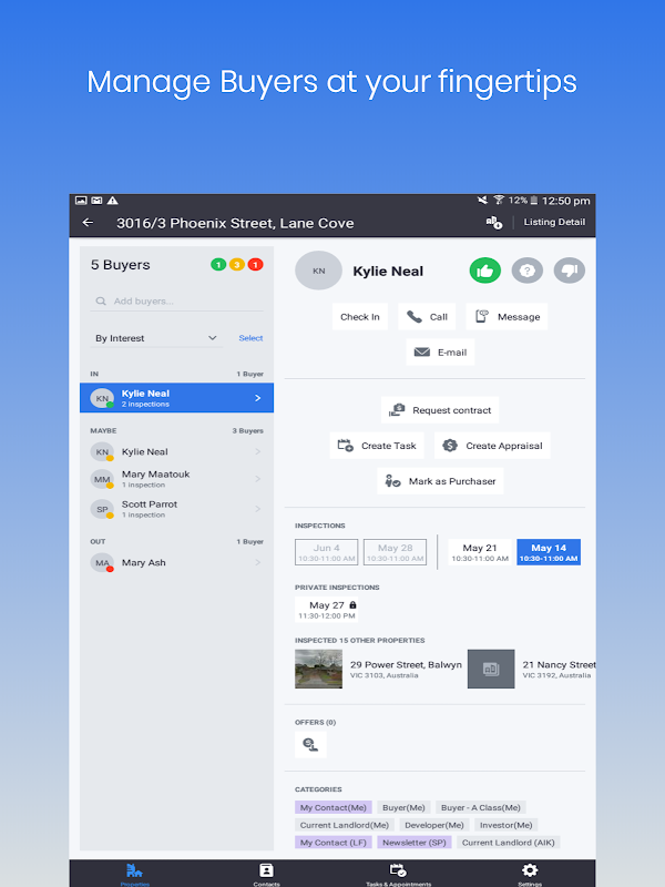 代理商現在可以管理銷售交易的生命週期。添加新房產,創建評估,然後轉換為房源,管理買家並輸入銷售交易。