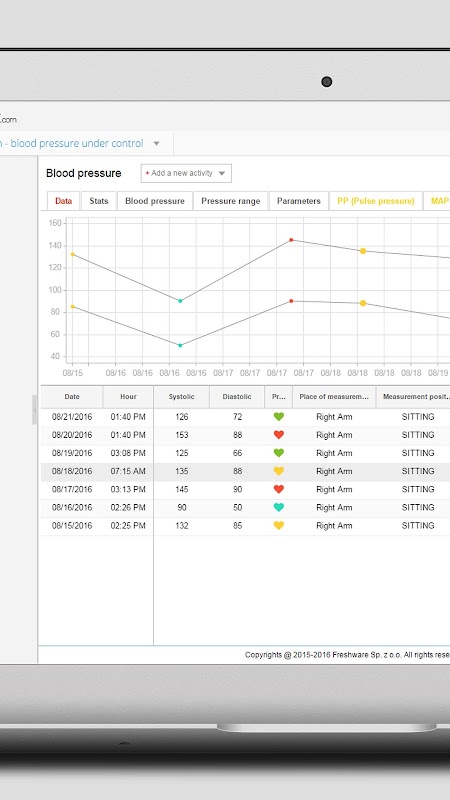 圖表和統計數據將使目前的結果控制和你的壓力的持續監控,並感謝提醒,你不應該忘記測量或服用適當的藥物。