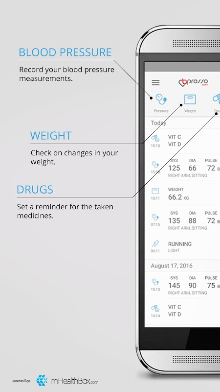 該bpresso PRO應用程序是mhealthbox.com平台的一部分